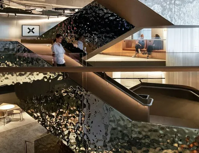 Сталь с эффектом водной ряби (WATER RIPPLES STEEL) — это инновационная декоративная нержавеющая сталь с текстурой, имитирующей волны на водной глади. Рельефная поверхность материала по-разному отражает свет в течение дня: она мерцает и переливается, создавая постоянно меняющуюся визуальную картину, которая никогда не выглядит монотонной. Water ripples steel воплощает современные тренды в архитектуре и дизайне интерьеров, сочетая природные мотивы и высокотехнологичные материалы.
