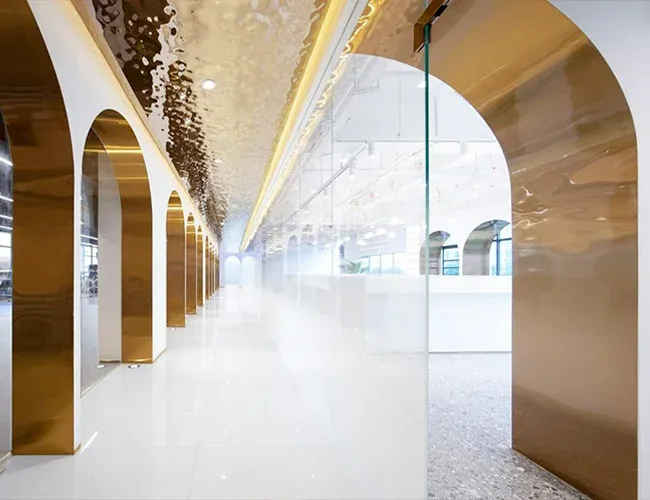 Изготовление декоративной нержавеющей стали — это высокоточная технология, сочетающая науку и эстетику. При вакуумном напылении создаётся прочное PVD-покрытие: нитрид титана проникает в структуру металла, сохраняя его фактуру и придавая нужный оттенок. Такой метод обеспечивает насыщенный цвет, устойчивый к царапинам, температурам и времени — как на куполах храмов, сверкающих десятилетиями. В результате сталь получает не только эффектный внешний вид, но и исключительную практичность, долговечность и простоту в уходе. Благодаря этим свойствам декоративная нержавейка широко используется в архитектуре, оформлении фасадов, интерьеров, лифтовых кабин, производстве мебели, торгового оборудования, декоративных панелей, вывесок и элементов благоустройства.