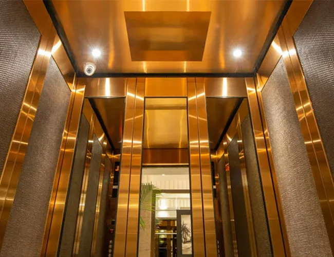 Сатинированная нержавеющая сталь — это премиальный материал с благородной матовой поверхностью и характерными тонкими линиями шлифовки. Поверхность мягко рассеивает свет, избегая резких бликов и создавая комфортную для глаз атмосферу. Подходит как для внутреннего, так и для наружного применения, часто используется для отделки лифтов. Одинаково хорошо смотрится в минималистичных, индустриальных, классических и современных интерьерах.