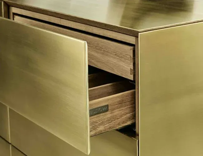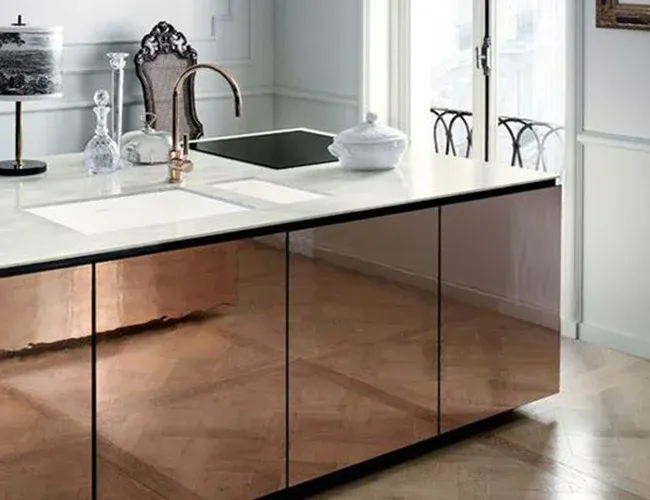 Зеркальная нержавеющая сталь — декоративный материал с идеально гладкой отражающей поверхностью. Высочайшая степень полировки создает эффект настоящего зеркала, превращая сталь в инструмент для игры со светом и пространством. Зеркальная поверхность умножает естественный и искусственный свет и делает пространство визуально больше и светлее, что особенно ценно в компактных помещениях.